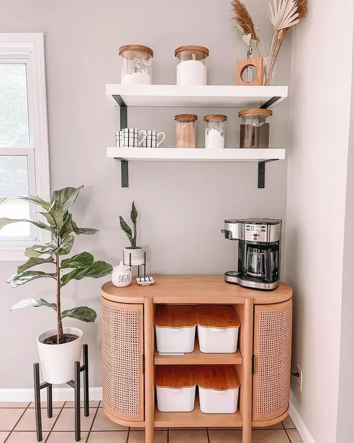 The most functional and beautiful small coffee bars use decorative items that also serve a purpose. Instead of adding purely decorative objects that take up space, choose items that look great and do something. A few favorites: