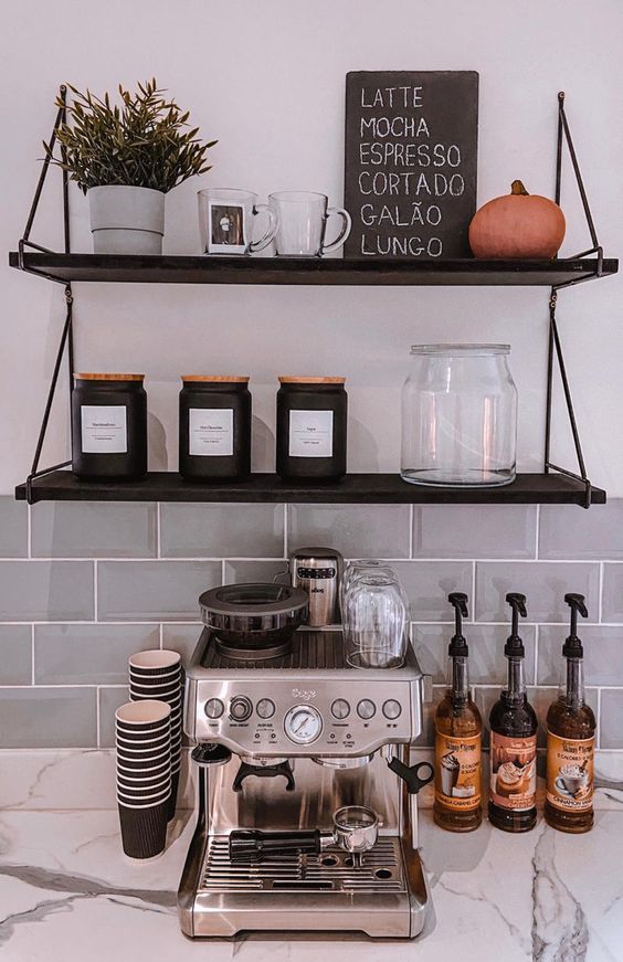To make the most of your small coffee bar, vertical storage is your best friend. Here’s how to optimize every inch: